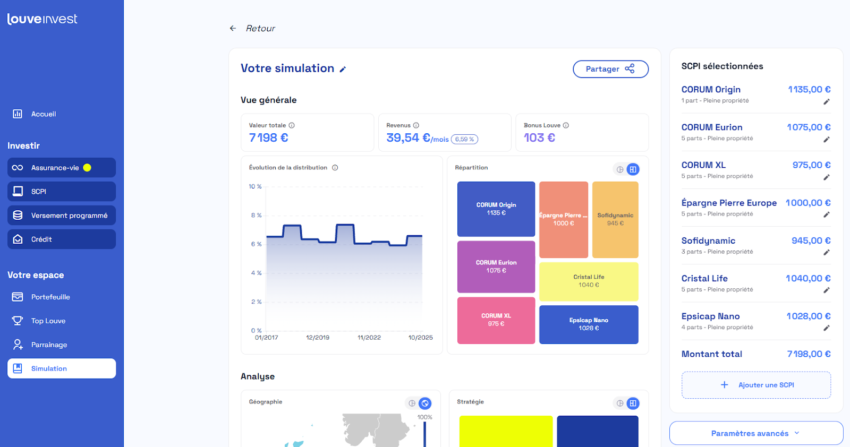 Lancée en 2020 par deux ingénieurs français, Louve Invest est une plateforme spécialisée dans l’investissement en SCPI 100 % en ligne. Partant du constat que l’investissement immobilier en direct est souvent complexe et chronophage, ses fondateurs ont voulu simplifier l’accès aux Société Civile de Placement Immobilier.
